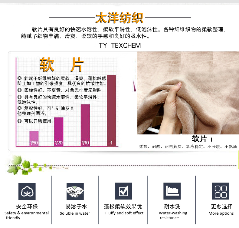 适用于各种纤维、对棉、T/C及化纤手感好。