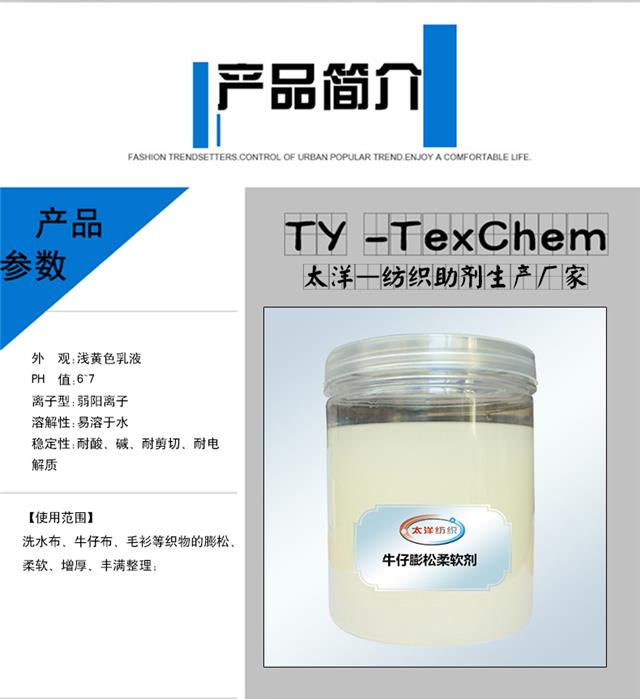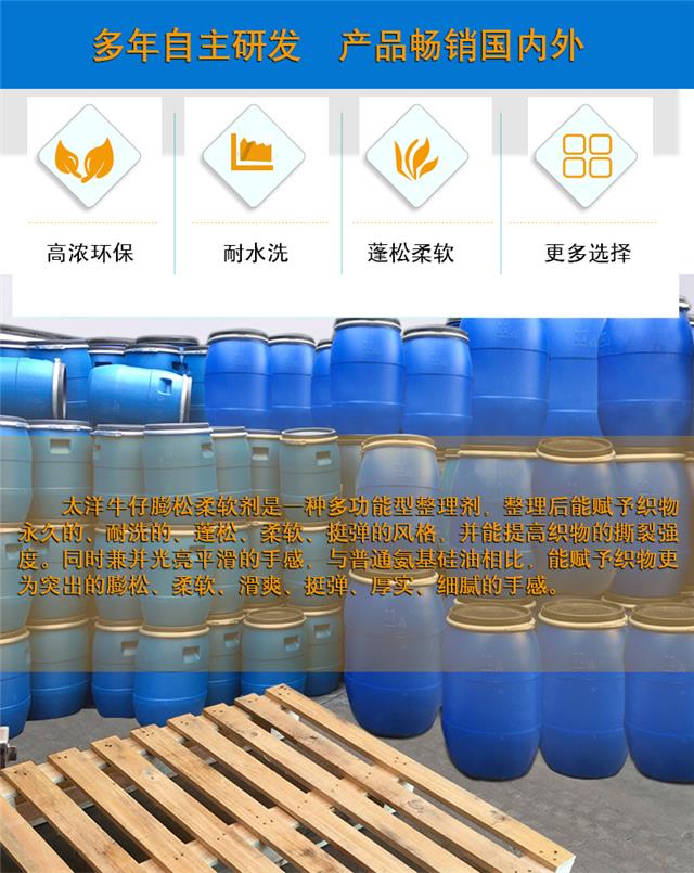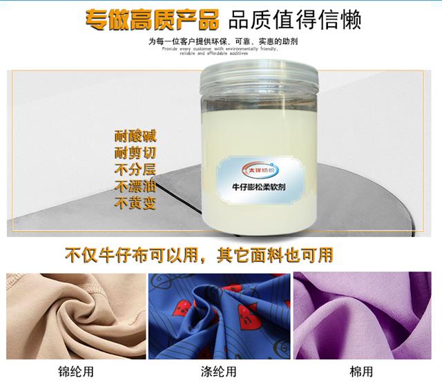 3、本品渗透性好,能进入纤维的内部使织物变得膨松、柔软;